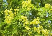 元宝槭为无患子科槭属落叶乔木,高达10米。叶长5—12厘米,宽8—12厘米,裂片三角状卵形,基部平截,稀微心形,幼叶下面脉腋具簇生毛,掌状;叶柄长3—13厘米。伞房花序顶生;雄花与两性花同株。…全部>>