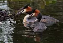 凤头鸊鷉:体长为50厘米以上,体重为0.5-1千克。前额和头顶部黑褐色,枕部两侧的羽毛往后延伸,分别形成束羽冠。脚的位置几乎处于身体末端,尾羽短而不显,趾侧有瓣蹼。瓣蹼十分发达,除了适于游水之外,…全部>>