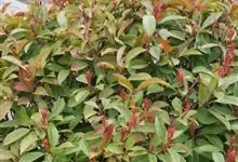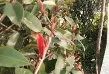 红叶石楠 是蔷薇科,石楠属杂交种,为常绿小乔木或灌木,乔木高可达5米、灌木高可达2米。叶片革质,长圆形至倒卵状、披针形,叶端渐尖,叶基楔形,叶缘有带腺的锯齿,花多而密,复伞房花序,花白色,梨果黄红色,…全部>>