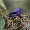 蓝大翅鸲是鹟科、大翅鸲属小型鸟类,体长19-21厘米。两翅尖长。雄鸟通体鲜紫蓝色具金属光泽。两翅和尾黑色。雌鸟上体灰褐色,头、颈、翕具棕白色纵纹,翅上有白色翅斑。虹膜暗褐色,嘴、脚黑色。…全部>>