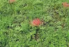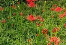 石蒜[学名:Lycoris radiata Herb.],是石蒜科石蒜属的多年生草本植物,别名彼岸花、红花石蒜、死人花、蟑螂花、龙爪花等。石蒜的叶狭带状,中间有粉绿色带,秋季出叶。伞形花序,花鲜红色。…全部>>