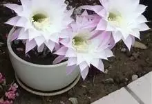 仙人球花 仙人掌科,仙人球属。植株单生或成丛。幼株球形,老株长成圆筒状,高可达75厘米,直径12-15厘米。球体暗绿色,具棱11-12。刺锥状,黑色,长1-1.5厘米。花着生于球体侧方,大型嗽喇叭状…全部>>