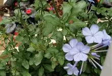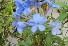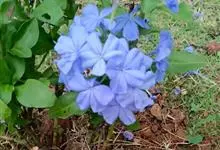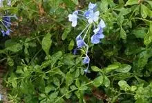 蓝花丹是白花丹科、白花丹属的常绿亚灌木。高约1米;叶薄,呈菱状卵形至狭长卵形;穗状总状花序,总花梗短,花冠淡蓝色至蓝白色,呈倒卵形,苞片呈线状狭长卵形,小苞呈狭卵形或长卵形,…全部>>