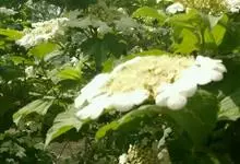 蝴蝶戏珠花 Miq.)是荚蒾科荚蒾属植物。落叶灌木,高达3米;当年小枝浅黄褐色。叶较狭,宽卵形或矩圆状卵形,有时椭圆状倒卵形。花序直径4-10厘米,外围有4-6朵白色、木型的不孕花。果实先红色后变黑色,…全部>>