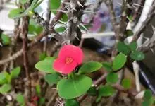 铁海棠为大戟科大戟属蔓生灌木植物;茎多分枝,具纵棱,呈旋转状;叶互生,通常集中于嫩枝上;每个花序基部边缘具微小的红色尖头;苞叶先端圆且具小尖头,无柄,上面鲜红色,下面淡红色;苞片丝状;子房光滑无毛,…全部>>