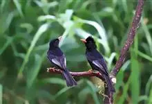 黑短脚鹎:是鸟纲、鹎科的中型鸟类,体长22-26厘米。嘴鲜红色,脚橙红色,尾呈浅叉状。羽色有两种色型,一种通体黑色,另一种头、颈白色,其余通体黑色。野外特征极明显,容易识别。全部>>