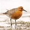 红腹滨鹬,是鹬科、滨鹬属的小型涉禽,体长23-25厘米,嘴较短而直、黑色,脚亦甚短、绿色。体较粗胖。夏季上体灰褐色具黑色中央纹,背具棕栗色和白色斑纹和羽缘,头侧和整个下体栗红色。冬季棕红色消失,…全部>>