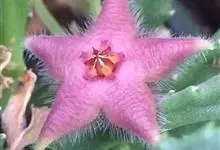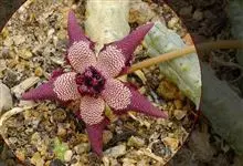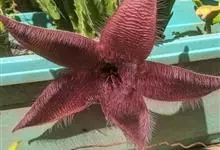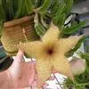巨花犀角又称大豹皮花,是夹竹桃科犀角属的一种植物。茎粗,花大,边缘生长细毛。植株柱形多分枝呈丛生,柱形具4棱,棱缘具细小疣突。花大,五角星形黄色,并有横向棕褐色斑纹,似豹皮而得名。花期夏秋两季。…全部>>
