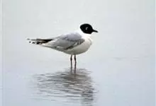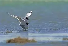黑嘴鸥 中型水鸟,体长31~39厘米。嘴黑色,脚红色。夏羽头黑色,眼上和眼 下具白色星月形斑,在黑色的头上极为醒目。颈、腰、尾上覆羽、尾和下体白色。初级飞羽末端具黑色斑点。翼下仅部分初级飞羽黑色,与…全部>>