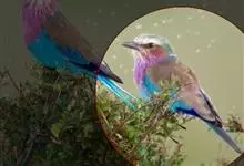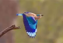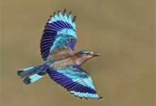 棕胸佛法僧是佛法僧科佛法僧属中型鸟类,体长32~35厘米。黑色的嘴细而下弯。头顶暗蓝色,喉、上背及部分飞羽淡紫;上胸葡萄紫色,具蓝色中央纹,下胸葡萄褐色,腹和尾下覆羽淡蓝色。腰蓝紫色,尾上覆羽辉蓝色。…全部>>