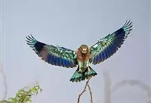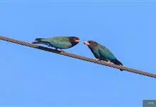 三宝鸟,是佛法僧目佛法僧科三宝鸟属中小型攀禽。成鸟通体为富有光泽的墨蓝绿色,头大而头顶扁平;头部色深近紫黑色,上体至尾泛有铜绿光泽;两翼有幽蓝金属光,初级飞羽黑褐色;羽基淡石青色,形成大块淡蓝,…全部>>