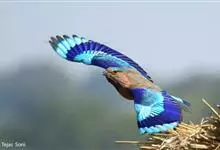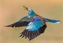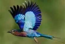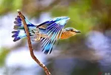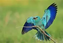 三宝鸟,是佛法僧目佛法僧科三宝鸟属中小型攀禽。成鸟通体为富有光泽的墨蓝绿色,头大而头顶扁平;头部色深近紫黑色,上体至尾泛有铜绿光泽;两翼有幽蓝金属光,初级飞羽黑褐色;羽基淡石青色,形成大块淡蓝,…全部>>