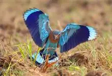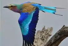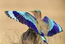 棕胸佛法僧是佛法僧科佛法僧属中型鸟类,体长32~35厘米。黑色的嘴细而下弯。头顶暗蓝色,喉、上背及部分飞羽淡紫;上胸葡萄紫色,具蓝色中央纹,下胸葡萄褐色,腹和尾下覆羽淡蓝色。腰蓝紫色,尾上覆羽辉蓝色。…全部>>