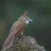 白喉冠鹎:体长20-25厘米。头顶红褐色,有长而细的羽冠、红褐色,头侧灰色。上体橄榄绿黄色,飞羽暗褐色,外翈茶黄色,尾下覆羽皮黄色。…全部>>