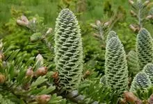 百山祖冷杉是松科、冷杉属植物。乔木,高约11米,胸径40厘米;树皮灰白色,不规则龟裂。叶条形,在侧枝上排列成二列状,或枝条下面之叶排列成两列。球果通常每一枝节之间着生1-3个,圆柱形,长7-12厘米,…全部>>