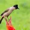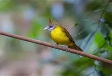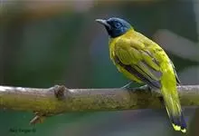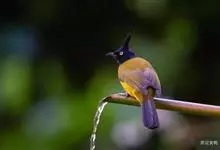黑冠黄鹎:体长18-21厘米,是一种中等体型偏黄色鹎。整个头、颈、颏、喉黑色,头顶有显著直立的羽冠,黑色,上体褐橄榄黄绿色,下体橄榄黄色。虹膜偏红;嘴及脚黑色。…全部>>