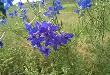 翠雀是毛茛科翠雀属的多年生草本植物。茎高可达65厘米;基生叶及茎下部叶具长柄,叶圆五角形,两面疏被短柔毛或近无毛;萼片紫蓝色,椭圆形或宽椭圆形;种子沿棱具翅;花期5-10月。…全部>>