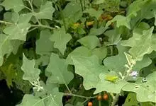 刺天茄,是茄科茄属的多年生草本植物。茎直立,枝条有刺;叶片大,互生,卵形或椭圆形,有长柄,叶面有短柔毛;花单生于枝顶,外面密被星状绒毛及细直刺,果被星状毛及直刺,浆果球形,光亮,…全部>>