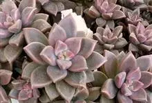 紫珍珠是景天科石莲花属的多年生肉质草本植物。植株中小型;叶片肉质,匙形,呈莲座状紧密排列;叶片粉紫色,叶缘呈粉白色,光照充足时颜色亮丽,不足时叶色会呈现深绿色或灰绿色,叶面光滑,被轻微白粉,…全部>>