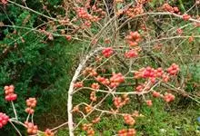 火棘 H. L. Li)是蔷薇科火棘属常绿灌木,老枝呈暗褐色;叶片呈倒卵形,边缘有钝锯齿,齿尖向内弯,两面皆无毛;叶柄短,无毛或嫩时有柔毛;花序是复伞房状,花瓣呈白色近圆形;果球近圆形,…全部>>