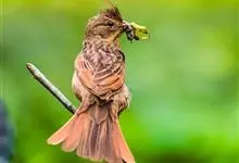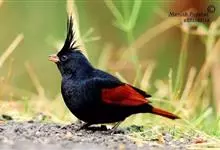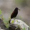 凤头鹀:属小型鸣禽,体重21-31克,体长134-175毫米。以头顶的细长羽冠为特征,雄鸟全身几乎均为黑色具蓝色光泽,两翅和尾以及尾上覆羽栗红色。雌鸟具短的褐色羽冠,上体暗橄榄褐色,…全部>>