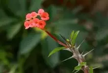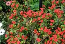 铁海棠为大戟科大戟属蔓生灌木植物;茎多分枝,具纵棱,呈旋转状;叶互生,通常集中于嫩枝上;每个花序基部边缘具微小的红色尖头;苞叶先端圆且具小尖头,无柄,上面鲜红色,下面淡红色;苞片丝状;子房光滑无毛,…全部>>
