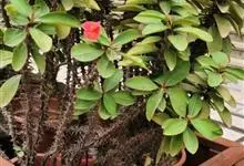 虎刺梅:别称铁海棠,是蔓生灌木植物。茎多分枝,长60-100厘米,直径5-10毫米,具纵棱,密生硬而尖的锥状刺,刺长1-1.5厘米,直径0.5-1.0 毫米,常呈3-5列排列于棱脊上,呈旋转。叶互生…全部>>