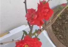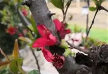 贴梗海棠Nakai)是蔷薇科、木瓜海棠属植物。落叶灌木,高达2米,枝条直立开展,有刺。叶片卵形至椭圆形,稀长椭圆形,长3-9厘米,宽1.5-5厘米。花先叶开放,3-5朵簇生于二年生老枝上。…全部>>