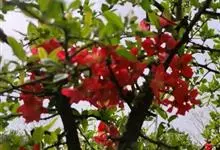 贴梗海棠Nakai)是蔷薇科、木瓜海棠属植物。落叶灌木,高达2米,枝条直立开展,有刺。叶片卵形至椭圆形,稀长椭圆形,长3-9厘米,宽1.5-5厘米。花先叶开放,3-5朵簇生于二年生老枝上。…全部>>