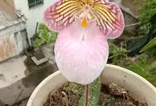兜兰又称拖鞋兰。兰科多年生草本。多数为地生种,杂交品种较多。是栽培最普及的洋兰之一。主要分布亚洲热带和亚热带林下。喜温暖、湿润和半阴的环境。茎甚短;叶片带形或长圆状披针形,绿色或带有红褐色斑纹。…全部>>