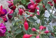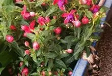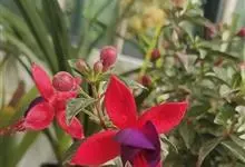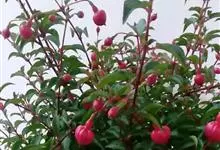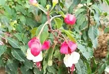 倒挂金钟是柳叶菜科倒挂金钟属亚灌木植物。茎直立,多分枝;幼枝带红色,被短柔毛与腺毛,老时渐无毛;叶对生,卵形或窄卵形,脉常带红色;常带红色,被短柔毛与腺毛;花筒红色,筒状钟形,…全部>>
