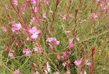 山桃草是柳叶菜科、山桃草属植物。多年生宿根草本。高60-100厘米,叶无柄,椭圆状披针形或倒披针形,花期晚春至初秋;多花型,花蕾白色略带粉红,初花白色,谢花时浅粉红。花紫红色,成密生的穗状花序,…全部>>