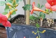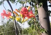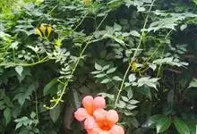 凌霄 Schum.),别名上树龙、五爪龙、九龙下海等,为紫葳科凌霄属的攀援藤本植物。其茎木质,以气生根攀附于它物之上。叶对生,为奇数羽状复叶;小叶卵形至卵状披针形,边缘有粗锯齿;顶生疏散的短圆锥花序,…全部>>