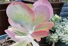 唐印为景天科伽蓝菜属的多年生肉质草本植物。植株中型,株高50厘米,宽20厘米,多分枝;叶片肉质,对生,卵形,全缘,先端钝圆,叶片淡绿色至灰绿色,表面被有厚厚的白粉,光照充足时,叶缘呈红色;圆锥花序,…全部>>