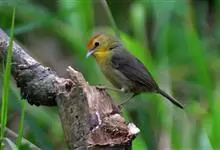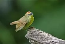 金头穗鹛小型鸟类,体长10~11厘米,是一种黄色小鸟。头顶金黄色有黑色纵纹,眼先黑色,在头、颊和耳羽金黄色的衬托下亦甚醒目。上体橄榄黄色,下体亮黄色,腹和两胁沾绿。…全部>>