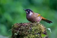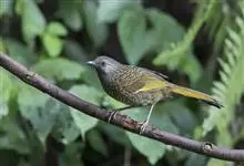 灰腹噪鹛是画眉科、噪鹛属鸟类。中型鸟类,体长21-25厘米。额黑色,头顶黑或灰色,眼先、脸白色。上体橄榄褐至棕褐色,尾和内侧飞羽具窄的白色端斑和宽阔的黑色亚端斑,外侧初级飞羽外翈蓝灰色或灰色,颧纹黑色。…全部>>