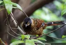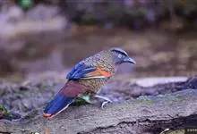 蓝翅噪鹛:噪鹛科、彩翼噪鹛属动物。中型鸟类,体长22-25厘米。上体棕橄榄褐色密被黑色鳞状斑,眼蓝白色,眼上有一长而宽阔的黑色眉纹,从眼先直到颈侧。下体棕褐色被黑色鳞状斑;尾上和尾上覆羽栗色,…全部>>