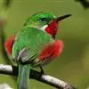 火尾绿鹛是莺科、绿鹛属小型鸟类,体长11-14厘米。上体绿色,头顶至枕具黑色鳞状斑,眼先和眼后黑色,眉纹黄绿色。两翅黑色具黄色和红色翅斑及白色端斑,极为醒目。中央一对尾羽绿色,外侧尾羽鲜红色。…全部>>
