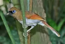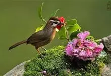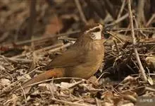 白颊噪鹛是雀形目噪鹛科噪鹛属鸟类,又称土画眉、小画眉、小噪鹃。成鸟额至头顶栗褐色,长眉纹、眼先和颊纹棕白色,眼后至耳羽深褐色,…全部>>