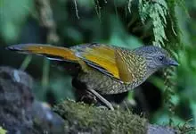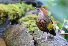 蓝翅噪鹛:噪鹛科、彩翼噪鹛属动物。中型鸟类,体长22-25厘米。上体棕橄榄褐色密被黑色鳞状斑,眼蓝白色,眼上有一长而宽阔的黑色眉纹,从眼先直到颈侧。下体棕褐色被黑色鳞状斑;尾上和尾上覆羽栗色,…全部>>