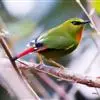火尾绿鹛是莺科、绿鹛属小型鸟类,体长11-14厘米。上体绿色,头顶至枕具黑色鳞状斑,眼先和眼后黑色,眉纹黄绿色。两翅黑色具黄色和红色翅斑及白色端斑,极为醒目。中央一对尾羽绿色,外侧尾羽鲜红色。…全部>>