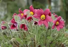 白头翁 Regel),是毛莨科白头翁属的一种植物,又名将军草、毫笔花、老冠花等。白头翁根状茎粗壮,具直根数条。通常在开花时刚刚生出基生叶,有长柄,叶片宽卵形。花葶1-,有柔毛,花直立,萼片蓝紫色,…全部>>