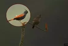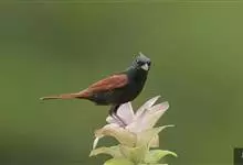 凤头鹀:属小型鸣禽,体重21-31克,体长134-175毫米。以头顶的细长羽冠为特征,雄鸟全身几乎均为黑色具蓝色光泽,两翅和尾以及尾上覆羽栗红色。雌鸟具短的褐色羽冠,上体暗橄榄褐色,…全部>>
