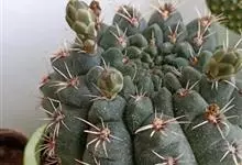 英冠玉是仙人掌科南国玉属的多年生肉质植物。茎幼时球形,后随年龄增长渐变为圆筒形,高可达5米,易群生,蓝绿色,茎顶密生绒毛;刺座密集,毛状黄白色,中刺针状褐色;花大,花冠漏斗状,…全部>>