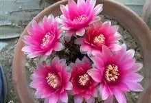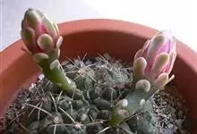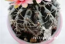 绯花玉 Speg.)是仙人掌科、裸萼球属多肉植物,植株呈扁球形,表皮墨绿色,刺针状,每个刺座有5枚灰色周刺,花生于球体顶端,夏季开花,花色有白、粉红、深红等。果实纺锤形,深灰绿色,种子黑色。…全部>>