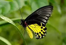 金裳凤蝶是凤蝶科、裳凤蝶属的动物。金裳凤蝶身体呈黑色,头、颈和胸侧有红毛,腹部有黑黄两色相间条纹,雄蝶前翅黑色,具黑天鹅绒光泽,各脉两侧灰白色,后翅金黄色,各室外缘有等腰三角形黑斑1枚,斑内侧有晕,…全部>>