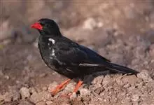 红嘴山鸦,是脊索动物门鸟纲雀形目鸦科鸟类。红嘴山鸦的成鸟通体羽毛纯黑色具有蓝色金属光泽,翼和尾泛有蓝绿色金属光泽;虹膜暗褐色,喙较为尖细,并且呈镰状下弯,喙和脚朱红色。…全部>>