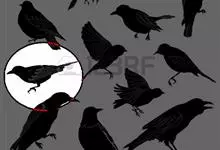乌鸦:是雀形目鸦科鸦属中数种黑色鸟类的俗称。又叫老鸹,嘴大喜欢鸣叫。为雀形目中体形最大的鸟类,体长50厘米左右。全身或大部分羽毛为乌黑色,故名。羽毛大多黑色或黑白两色,长喙,有的具鲜明的白色颈圈,…全部>>