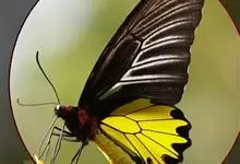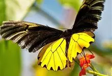 金裳凤蝶是凤蝶科、裳凤蝶属的动物。金裳凤蝶身体呈黑色,头、颈和胸侧有红毛,腹部有黑黄两色相间条纹,雄蝶前翅黑色,具黑天鹅绒光泽,各脉两侧灰白色,后翅金黄色,各室外缘有等腰三角形黑斑1枚,斑内侧有晕,…全部>>