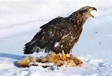 金雕:属于鹰科、雕属的猛禽。体长76-102厘米,翼展达2.3米,体重2-6.5千克。雌雄同色。未成年时,头、颈黄棕色;两翼飞羽除了最外侧三枚外基部均缀有白色,其余身体部分暗褐色;羽尾灰白色,…全部>>